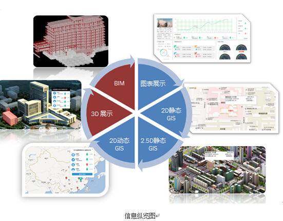 1、 丰富的展现形式满足不同客户的需求,实用简约、高端大气应有尽有。目前已支持图表展示、2D静态GIS、2.5D静态GIS、2D动态GIS、3D展示、BIM等 。