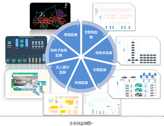 2、 本系统平台可对能源管理、设备管理等各类子系统进行完美集成。以组态方式形象的展示各监测子系统,对各类监测仪表的数据进行管理分析,并监测各类能源管线,提供告警管理,实时响应,确保能源和设备使用安全;此外与能耗分析、能效分析,节能诊断形成完美联动,提高运维效率。可接入的系统有:变配电系统、空调监测系统、环境监测系统、安防集成系统、给水排监测系统以及特殊设备管理集成。