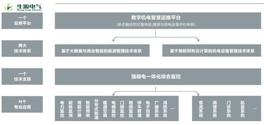 运用物联网、云计算技术,依靠能源与机电设备管理两大核心体系为支撑,以强弱电一体化监控和大数据挖掘分析为基础,以运维为核心理念,构建新一代数字机电智慧运维平台系统。