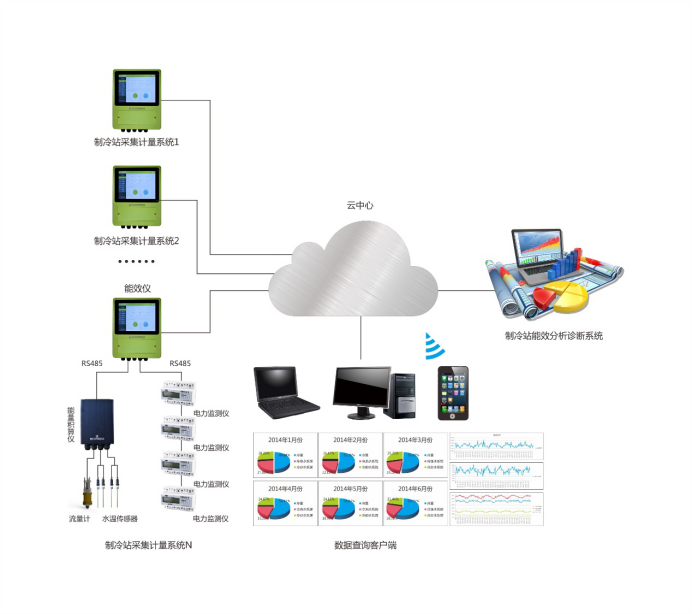 制冷站能效分析云系统用于实现制冷站数据采集与计量、制冷站运行数据记录、云端数据共享、专家诊断等功能。
